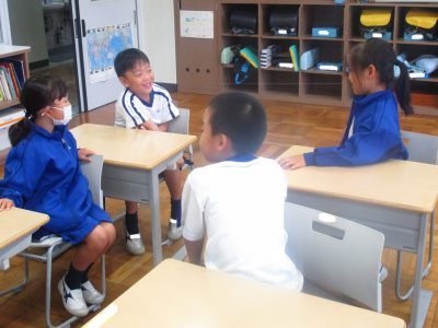 その後、1時間目の学級活動では、遠足の流れや約束を確認して、1年生のめあてを考えました。