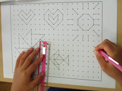 点と点を丁寧に直線で結びながら、好きな形を作っていきます。