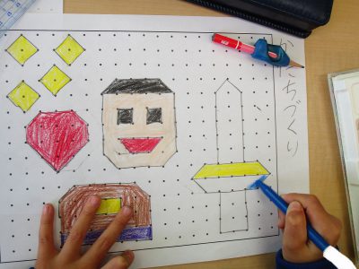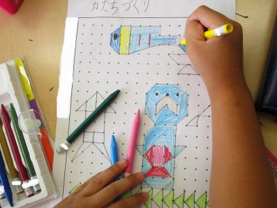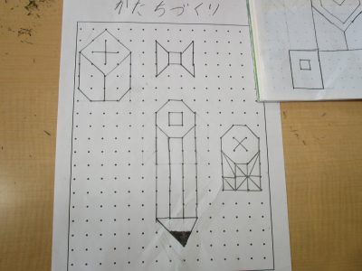 今日の算数は「点と点をつないで、色々な形を作ろう!」というめあてで取り組みました。