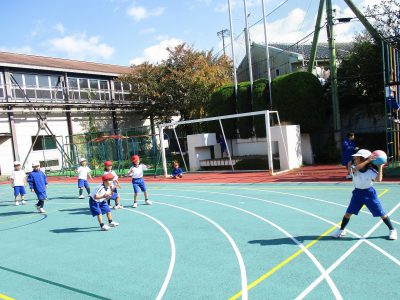同じ人ばかりがボールを投げるのではなく、ボールを譲り合いながら、楽しく遊んでいます。