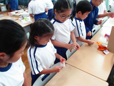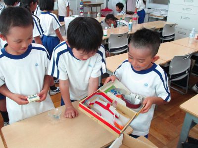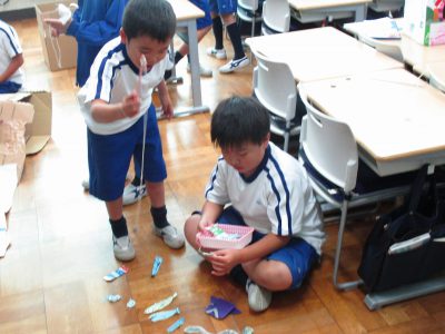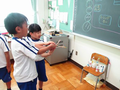楽しく遊びながら、1年生も2年生の手作りおもちゃの工夫を見つけることができました。