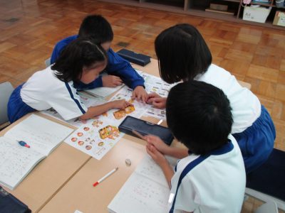 今日は「黒豆」「数の子」「海老」「だて巻き」「昆布巻き」「栗きんとん」に込められている願いを調べて、ノートにまとめました。