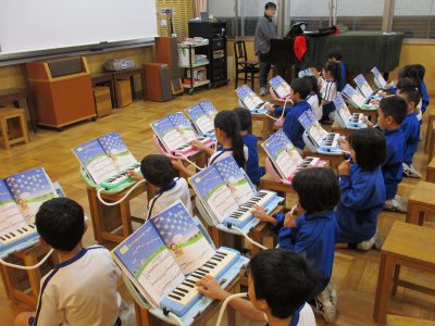 音楽の時間は、発表会で歌う歌の練習をした後、鍵盤ハーモニカの練習をしました。