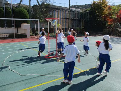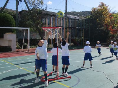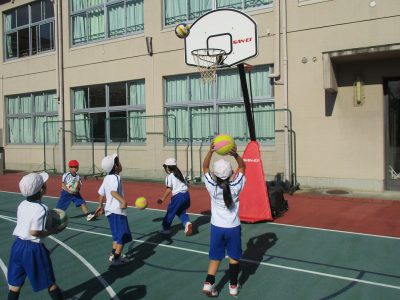 体育の学習では、今日も元気に縄跳びをした後、ボールを使っていろいろなボール運動をしました。