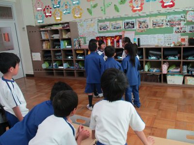 その後、みんなが楽しく遊べる「おにごっこ」について考えて、チームごとにロールプレイを発表しました。