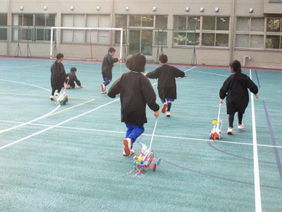 そして、いよいよ運動場でマイカーを走らせる時間が来ました!