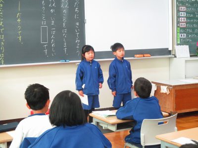 国語では、尋ねて分かったことをみんなに紹介する学習に取り組んでいます。