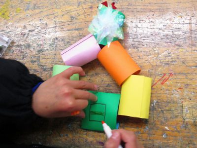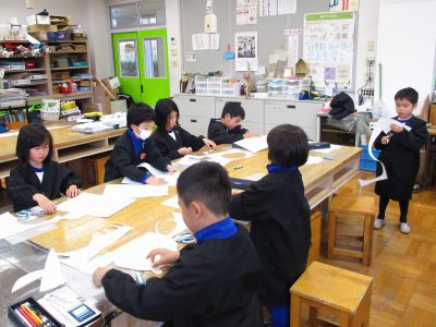 細かい切り貼りを工夫しながら、作品作りに取り組みます。