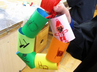 今日の図工の時間は「リース作り」と「紙版画作り」をしました。