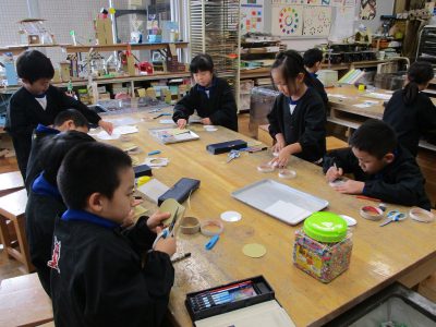 刷った後、版画用インクが乾くまでの間は、「6年生へのプレゼント作り」をしました。