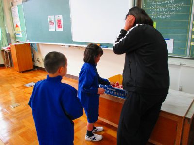 栄養教諭の居相先生から、牛乳の飲み方や片付け方のお話を聞きました。