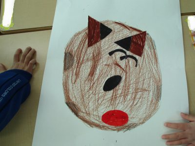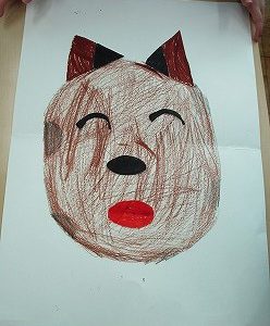 おはじき遊びの後は、手作りの「めんこ」「福笑い」「すごろく」で遊びました。