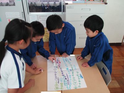 今日の生活科の時間は、はじめに「おはじき」遊びをしました。