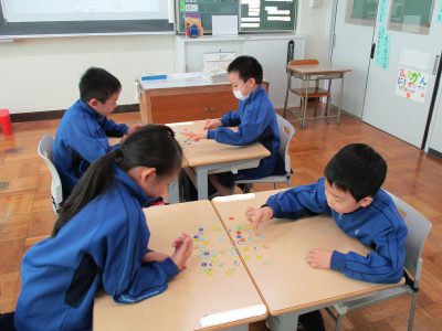 今日の生活科の時間は、先週にひき続き「おはじき遊び」から始めました。