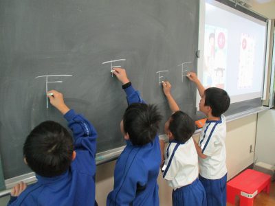 意味を学んだ後は、「耳」という漢字の書き順をみんなで確かめます。