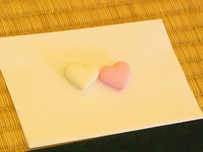 まず、お点前さんは、お客さんにお菓子を運びます。