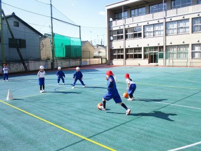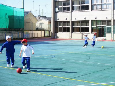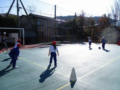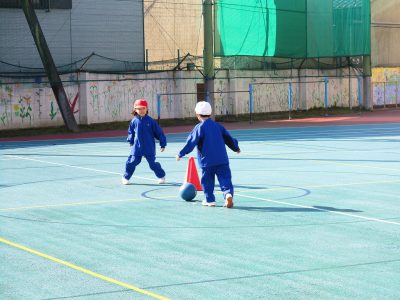 「ボール蹴り」では、色々な基礎練習をしてからゲームに入ります。