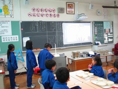 今日は、給食の時間に、ブックワールド係の4人が読み聞かせをしてくれました。