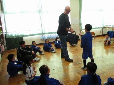 その後は“my bag”“your bag”など、身の回りにあるものを使いながら、[my~・your~]の表現を声に出して学習しました。