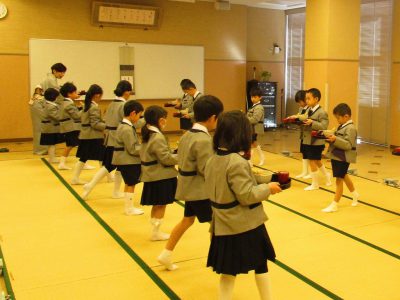 お菓子もまっすぐに持って、畳の縁を越える足に気をつけて、お客さんの元へ運びます。
