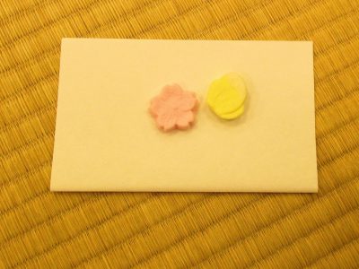 今日は、春を感じる「桜とちょうちょ」のお干菓子でした。