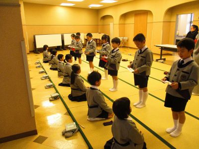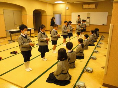 後半は、お点前さんとお客さんに分かれてのお稽古です。