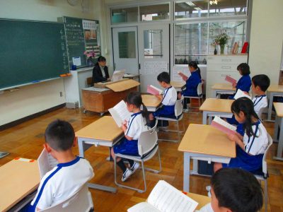 れんげデビュー集会で歌う歌は、2つのグループに分かれて聴き合ったり、