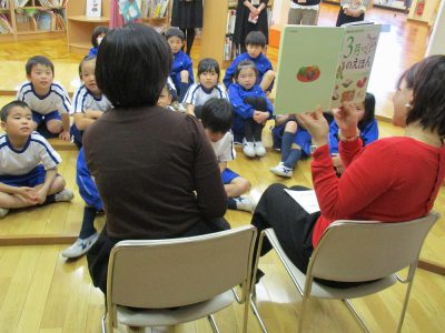 『もりの ひなまつり』のお話の前には、子ども達の成長を願う「桃の節句」と「端午の節句」のお話、ひな祭りに関する
