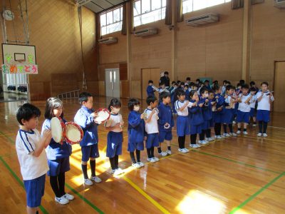 リズム楽器も、2年生の旋律に合わせて楽しく演奏しています。
