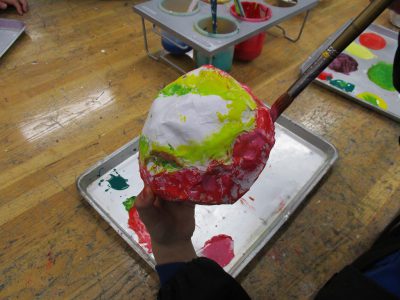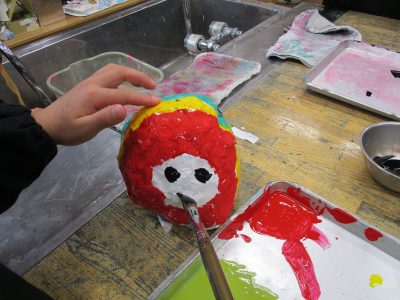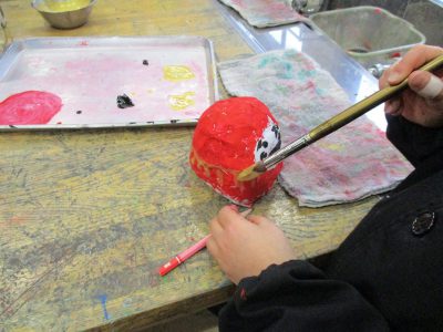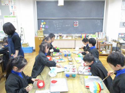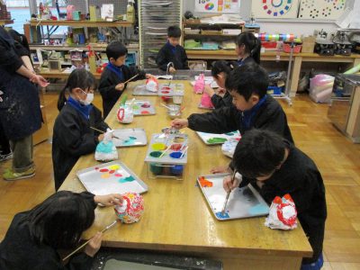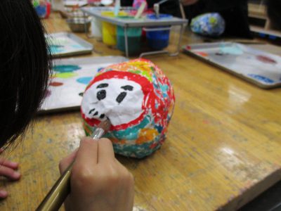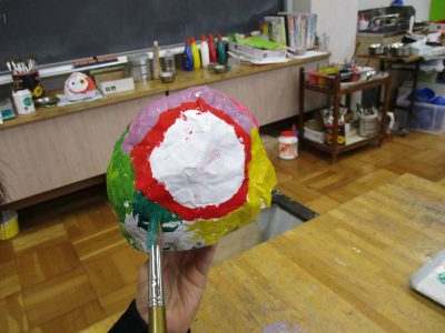 完成した人から、だるまを並べて、造形室で乾かしています。