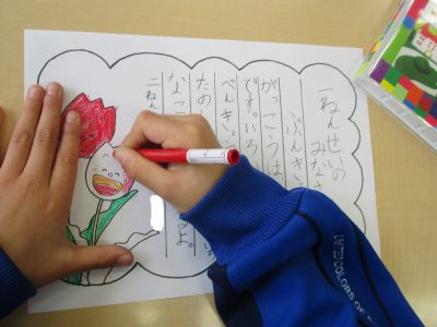 その後、2校時の国語では、漢字の復習をした後、お手紙を書きました。
