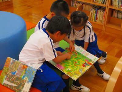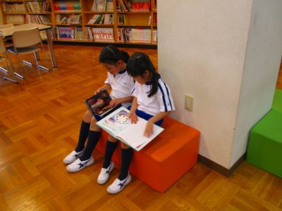 本を借りた後は、静かに読書をしたり、借りた本を見せ合ったりしていました。