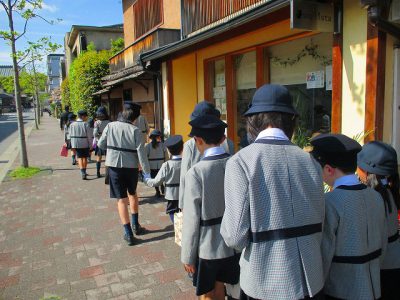 今朝は6年生の班長さんが教室まで来てくれて、一緒に知恩院へ向かいました。