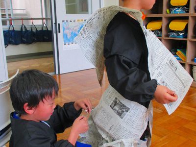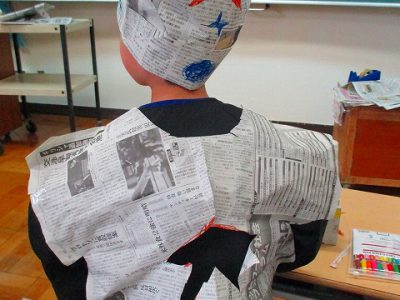 5・6時間目の図工は「新聞紙で遊ぼう!」というテーマで、新聞紙で色々なものを作りました。