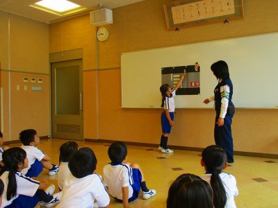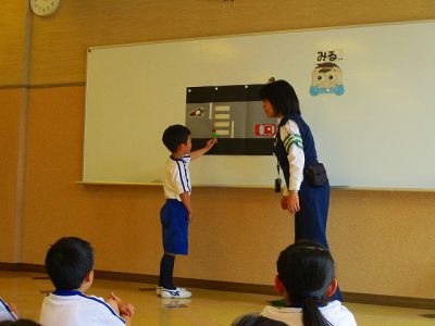 川端警察署の警察官の方から「安全な歩道の歩き方」や「横断歩道の渡り方」について学びました。