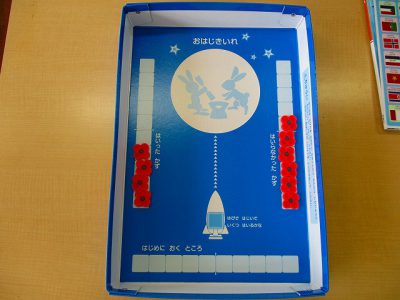 「おはじき入れゲーム」では、10個のおはじきを指ではじいて、円の中に入った数と、入らなかった数を調べました。