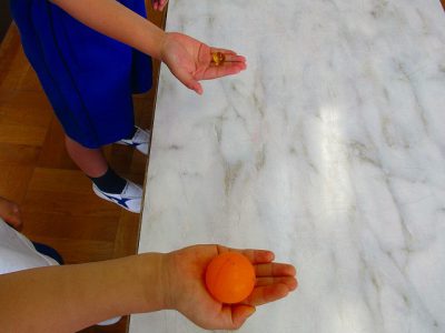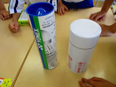 次の時間は、積み木を使いながら、「箱の形」「筒の形」「ボールの形」の特徴を、もう少しくわしく調べてみたいと思います。