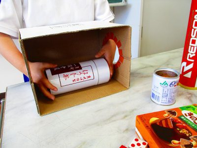 また「?ボックス」を使って、一人ずつ箱の中に入っているものの形を当てる活動もしました。