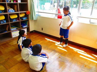 国語では、理由を表す言葉を用いて、身近にあった出来事を話す学習に取り組んでいます。