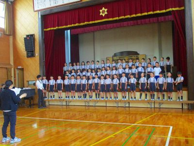 3年生と一緒に歌えることにわくわくしていた1年生でしたが、やはり舞台に立つと緊張した様子です。