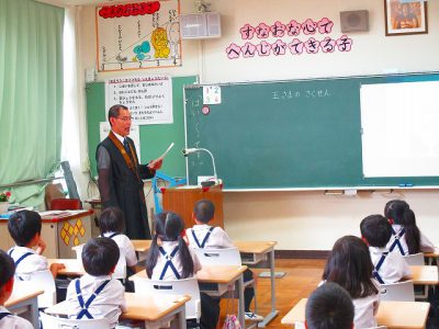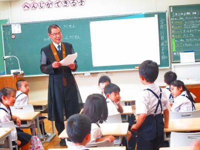 今日の「月かげ」の時間は、1年生の教室に長谷川先生が来てくださいました。