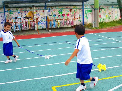 動物たちの様子を見ながら、歩く速さを考えてお散歩をする1年生のみんなです。