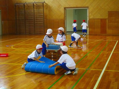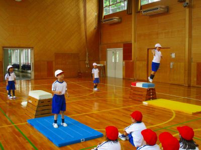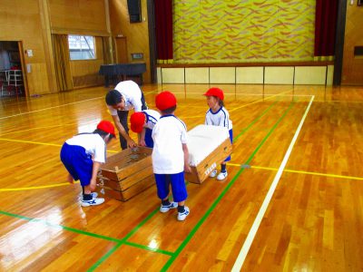 先週から、体育では「おに遊び」と「跳び箱遊び」に取り組んでいます。