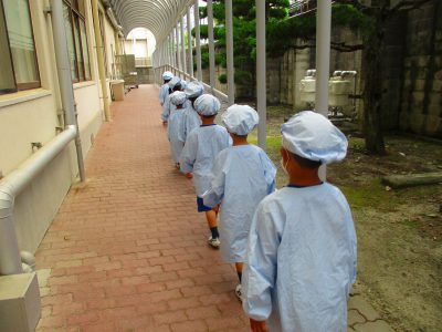 そして、きれいな列で給食室へ給食を取りに行きます。