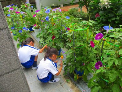 今日は生活科の時間に、先週集めたあさがおのお花を使って、色水遊びをしました。