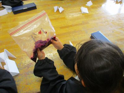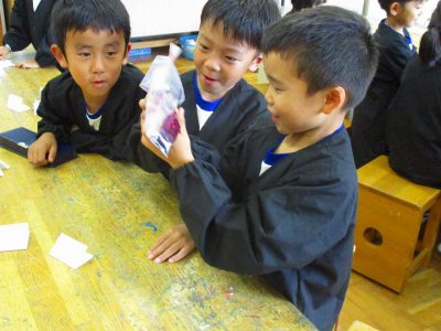 1枚できるともう1枚と、和紙の大きさや折り方を変えて、楽しく作ることができました。
