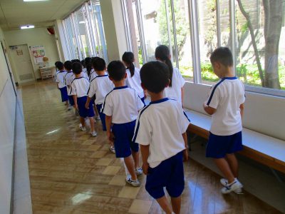 2学期前半の全校目標「心を合わせ、力を合わせ、行事を創り出そう!」を意識しながら、素早く並び、きれいな2列で移動することができました。
