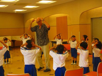挨拶の後は、♪Head shoulders knees and toes・・・