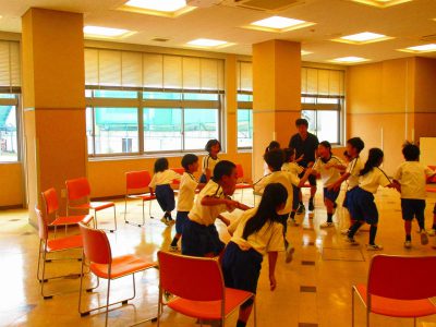 楽しくいろいろな歌を歌った後は、みんなで「フルーツバスケット」をしました。
