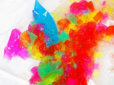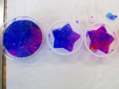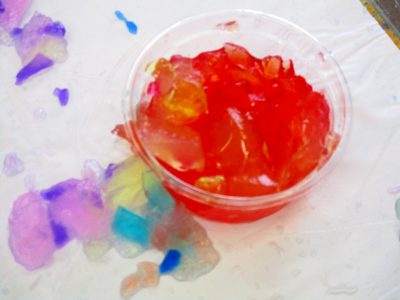 寒天の色や形、感触を楽しみながら、すてきな色の世界を表現していました。